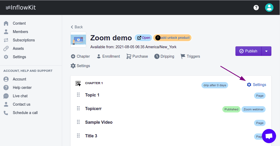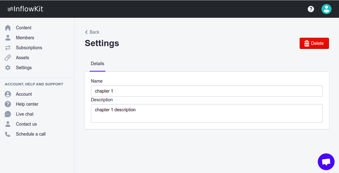 How to edit or delete a chapterLearn how to update chapter details.Published on 1/2/2020Update chapter details On the course details page, identify the chapter you’d like to edit then click settings on the far right. On the chapter settings page, select Details tab. You can now change the Name and description of the chapter. You can also delete it by clicking Delete on the top right corner.