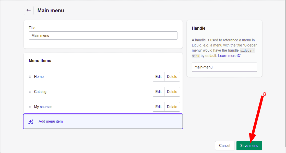 - Save the menu by clicking