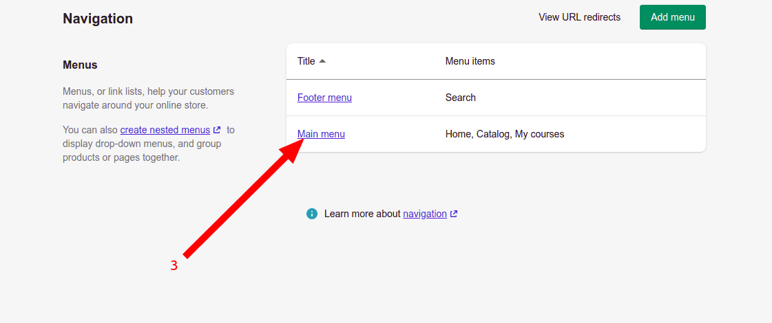 - Click add menu item link as shown below