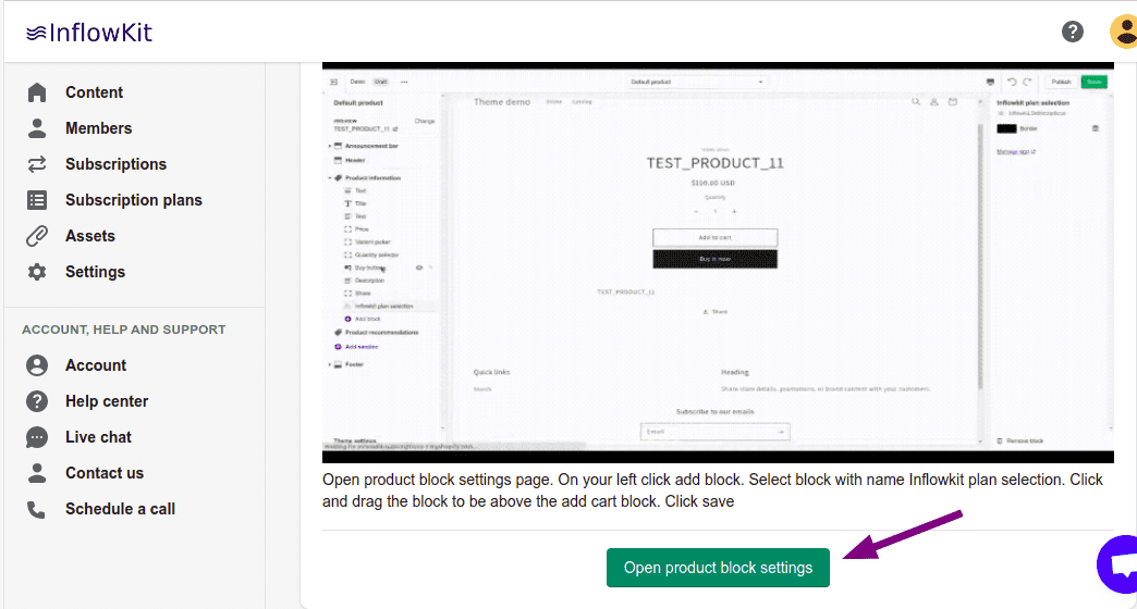 - Here you can drag the block up and down by clicking InflowKit plan selection to a position you’d like.
